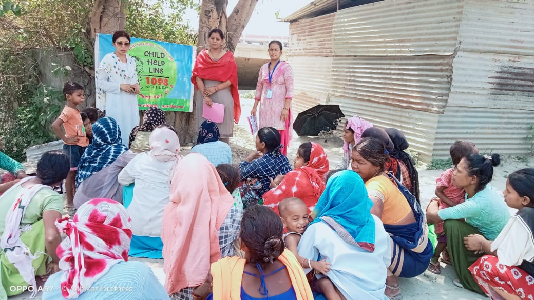 रूद्रपुर में चाइल्ड हेल्पलाइन की टीम द्वारा स्टेडियम के नज़दीक स्थित बस्ती में महिलाओं एवं बालिकाओं को टोल फ्री नंबर 1098 के संबंध में जानकारी दी